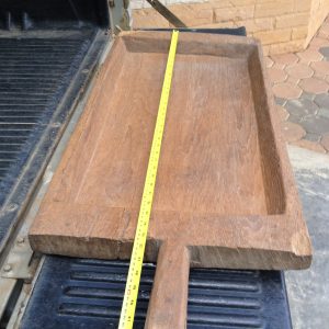 กั๋วข้าวเหนียวไม้สักเก่ารูปสี่เหลียมพืนผ้าใหญ่ (ถาดไม้ไว้คนข้าวเหนียว) ขนาดกว้าง 17 นิ้ว X ยาว 29.5 นิ้ว หนา 3.5 นิ้ว มีด้ามไว้จับ