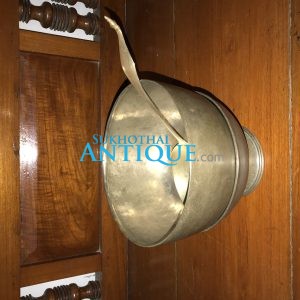 กั๋วข้าวเหนียวไม้สักเก่ารูปทรงกลม(ถาดไม้ไว้คนข้าวเหนียว) ขนาดเส้นผ่าศูนย์กลาง 23นิ้ว หนา4นิ้ว มีด้ามยื้นมาไว้จับ