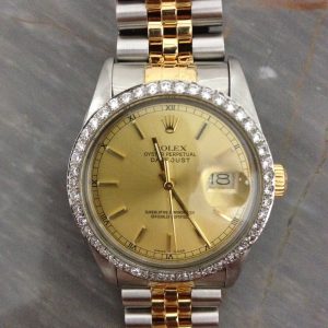 นาฬิกาRolex รุ่น Datejust 1603 สภาพเก็บเก่าแทบไม่ได้ใช้กรอบฝังเพชร สวยมากพร้อมกล่องไม้เดิมๆ