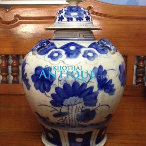 สวยงามมากๆ มีรอยหนึ่งรอยที่ส่วนบนของโอ่งและที่ปีกฝา ค่อนข้างสมบูรณ์ ไม่มีซ่อม ขนาด สผ 27 สูง 34.5 ซม