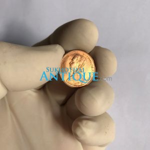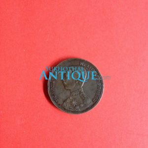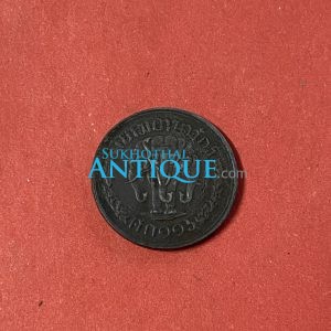 เหรียญทองแดงตราอุณาโลม - พระแสงจักร 1 สตางค์มีรูกลาง พ.ศ.2487 คมชัดสวยงาม