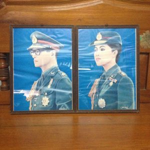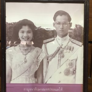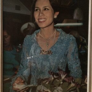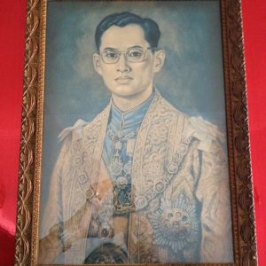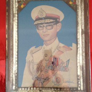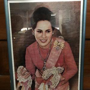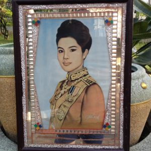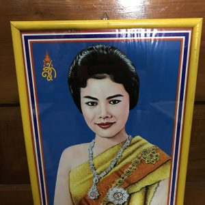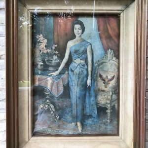 ภาพถ่ายราชินีจากภาพวาดของนายปราสาท ทรงชุดทรงชุดไทยสีชมพู ถือพวงมาลัย ของนิตยสาร อยู่ในกรอบไม้ขนาด 11" X 16"