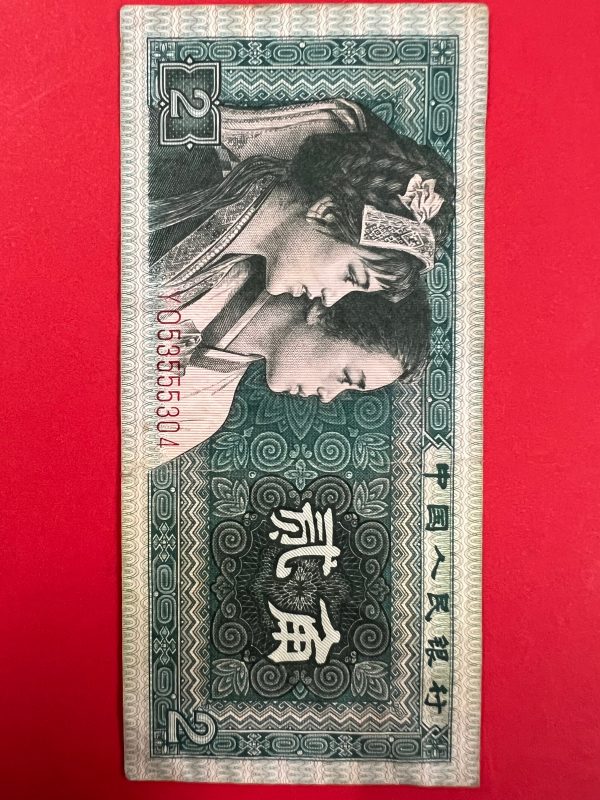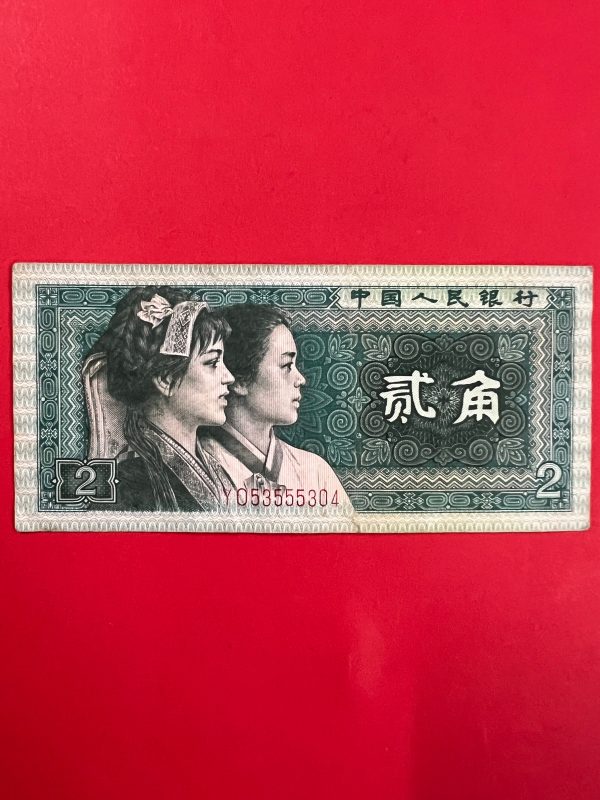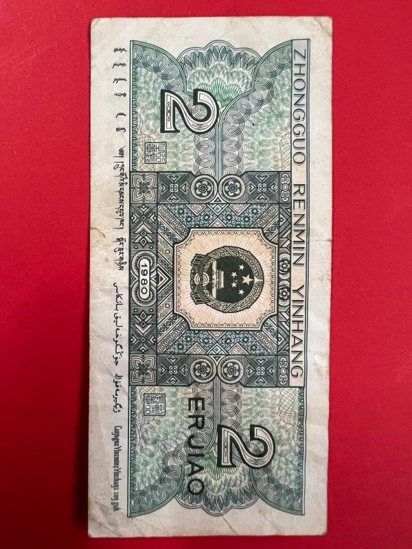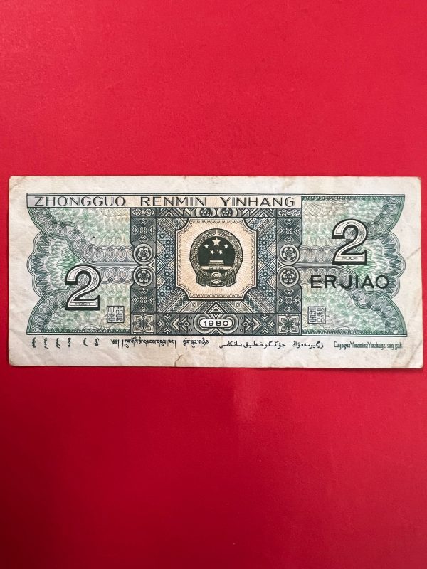 ธนบัตรจีน ธนาคารประชาชนจีน 2 เอวเอียว ( 2 เจียว) ปี 1980 หมายเลช 053555304