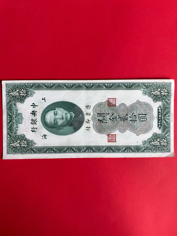 ธนบัตรเก่าประเทศจีน ค.ศ. 1940 มูลค่า 10 YUAN อายุประมาณ 80 กว่าปี สภาพใช้