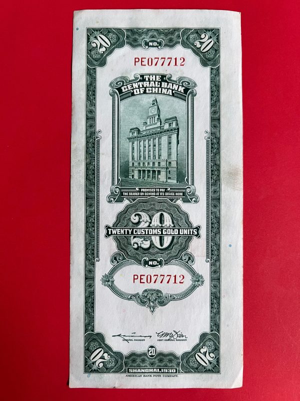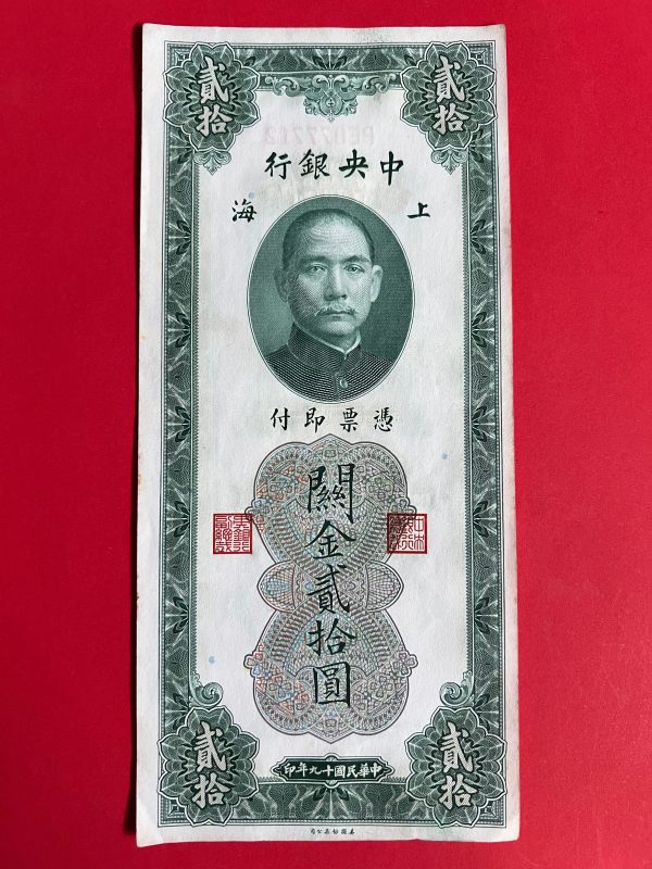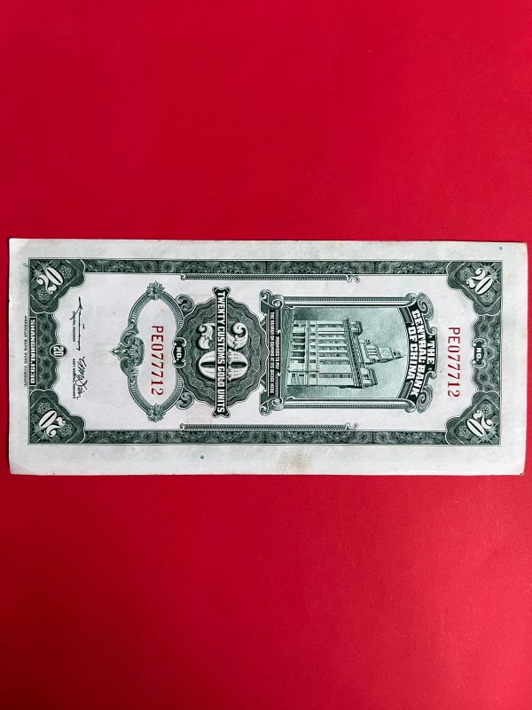 ธนบัตรเก่าประเทศจีน ค.ศ. 1930 มูลค่า 20 YUAN อายุประมาณ 80 กว่าปี สภาพใช้