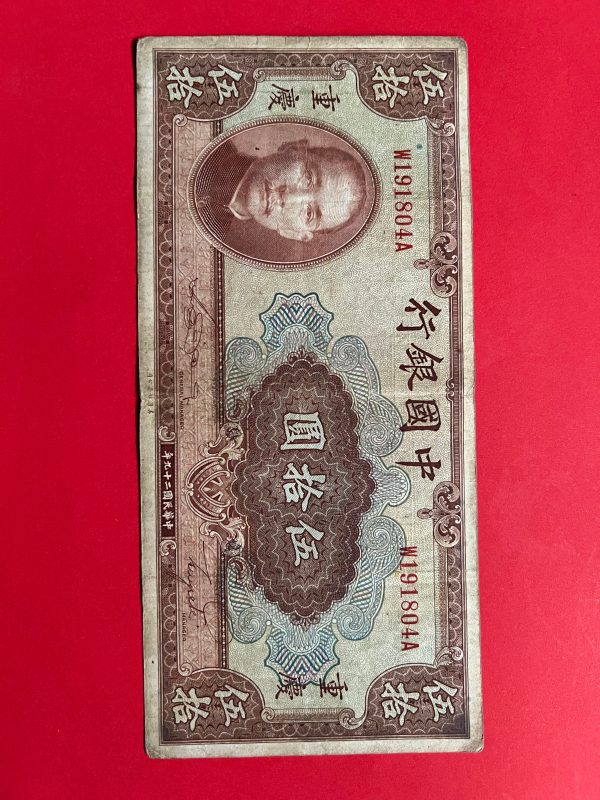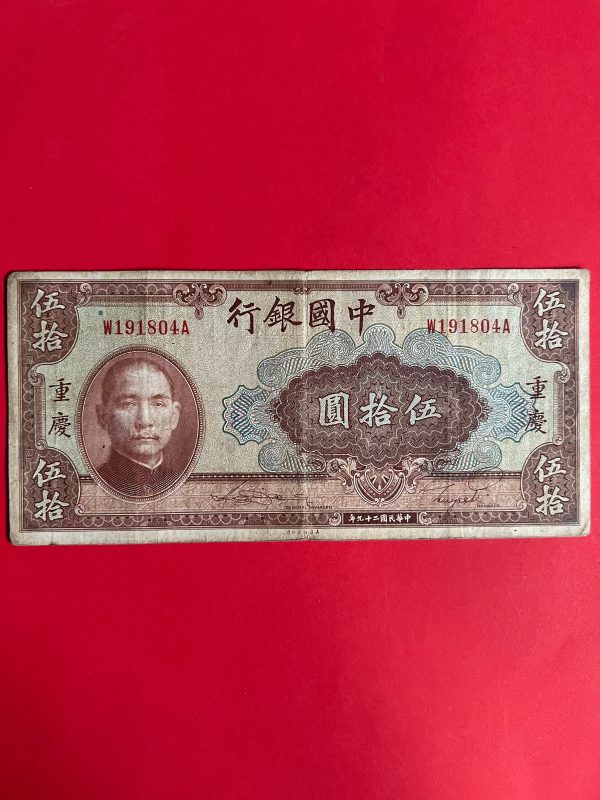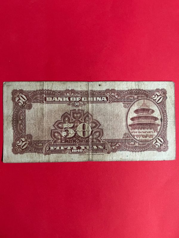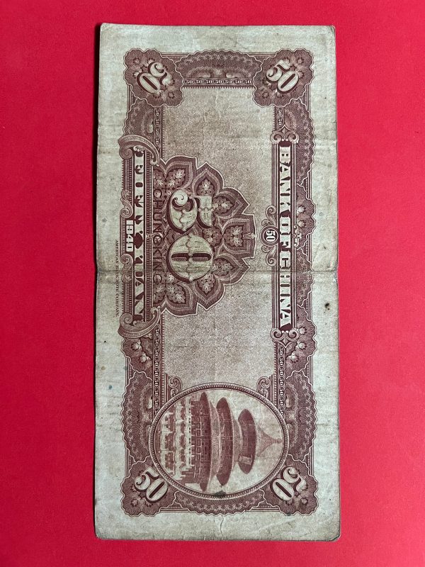 ธนบัตรเก่าประเทศจีน ค.ศ. 1940 มูลค่า 50 YUAN อายุประมาณ 80 กว่าปี สภาพใช้
