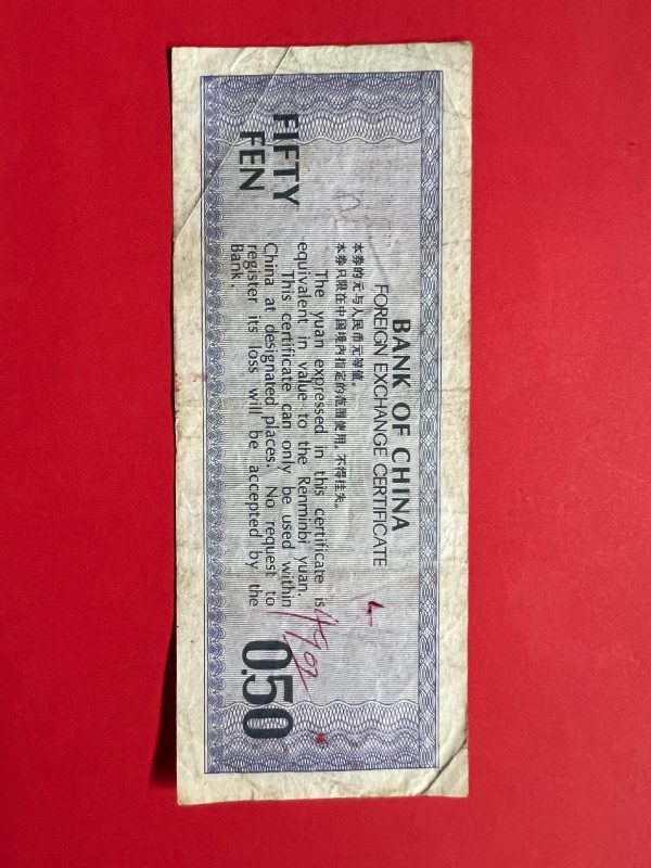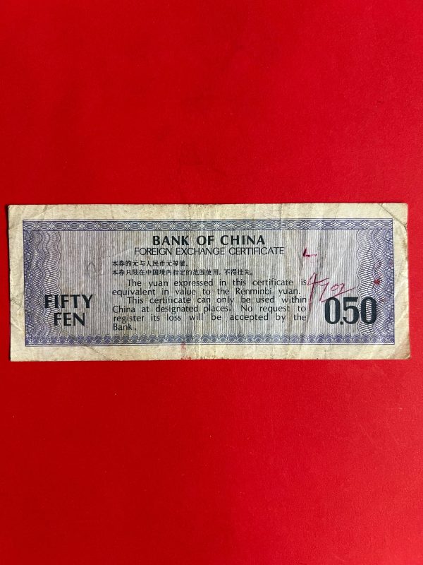 ธนบัตรเก่าประเทศจีน ( BANK OF CHAINA ) มูลค่า FIFTY FEN นับเป็นธนบัตรรุ่นที่ 2 ที่สามารถใช้ได้ทุกเขตทั่วประเทศหลังสงครามกลางเมือง