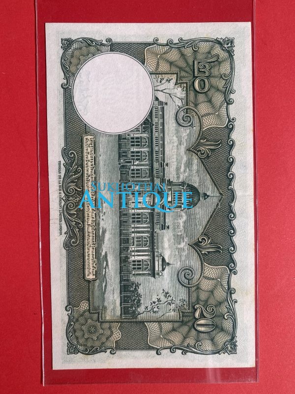 ธนบัตรแบบ 9 1บาท รุ่นที่ 4 ประกาศใช้ 10 มกราคม 2498 ลายเซ็น ภ บริภัณฑ์ยุทธกิจ - เกษม ศรีพยัคฆ์ พิมพ์ที่ บริษัท โทมัส เดอ ลา