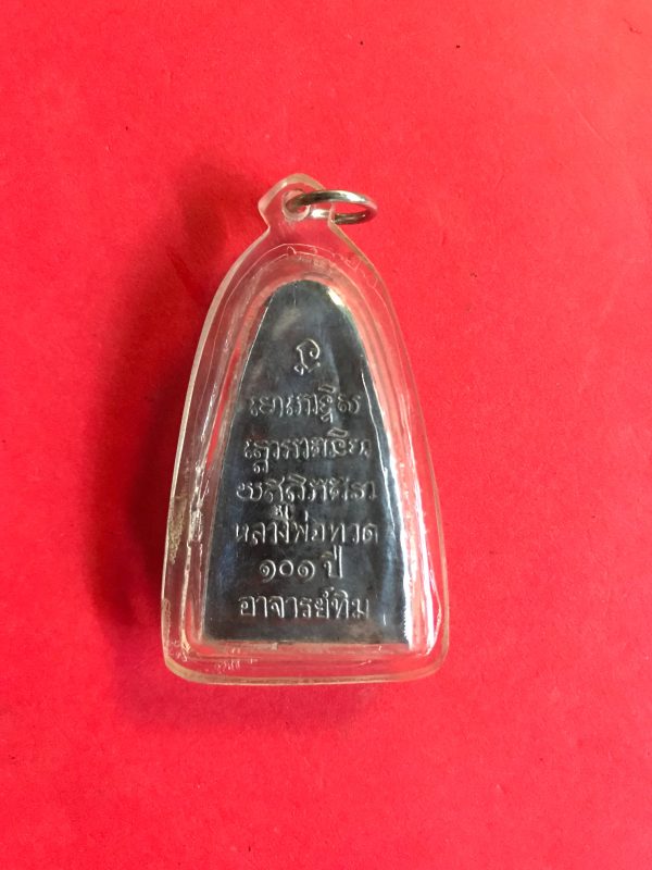 พระหลวงปู่ทวดพิมพ์เตารีดใหญ่ปั๊ม หลังหนังสือเนื้อทองแดงรมดำ วัดช้างให้ รุ่น 101 ปี อาจารย์ทิม โค๊ตมีตัว ท. จัดสร้างปี 2556