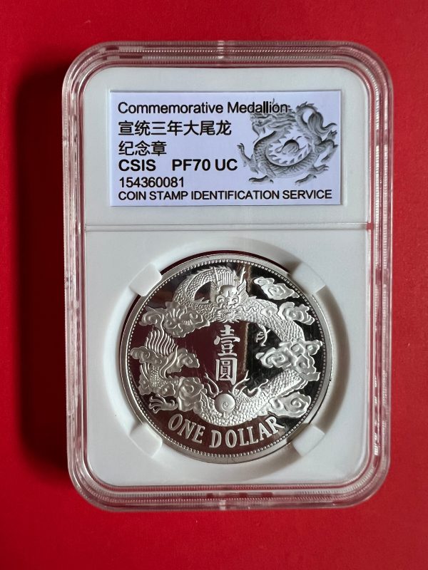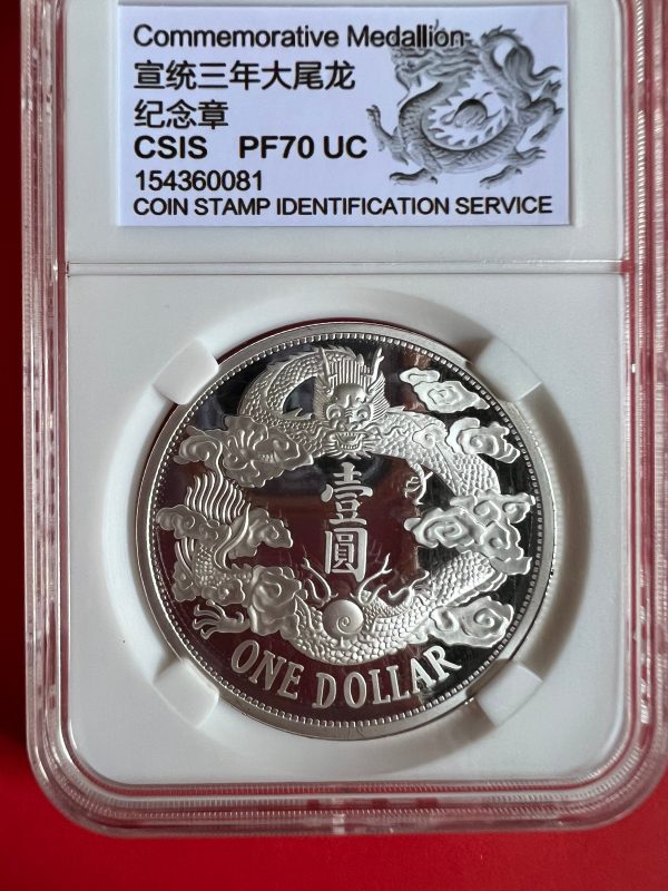 เหรียญต่างประเทศเนื้อเงินขัดเงา ประเทศจีนออกเกรดได้สูงสุด PF 70UC ตรามังกร