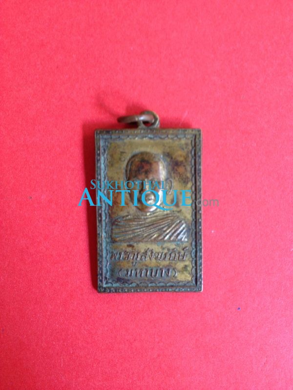เหรียญทองแดงสี่เหลี่ยมพระครูสังฆรักษ์(พระมหาบาง)วัดคุ้งวารี อ.lสวรรคโลก13 เมษา 2502 ในพิธืยกช่อฟ้า