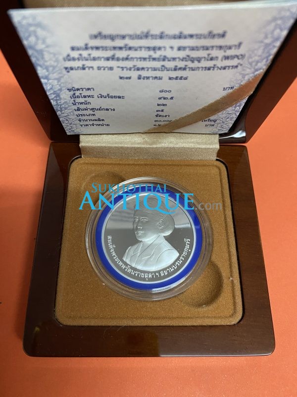 เหรียญสมเด็จพระเทพรัตนราชสุดาฯ รางวัลความเป็นเลิศด้านการสร้างสรรค์ ( WIPO ) 27 สิงหาคม 2558 เนื้อเงินขัดเงา