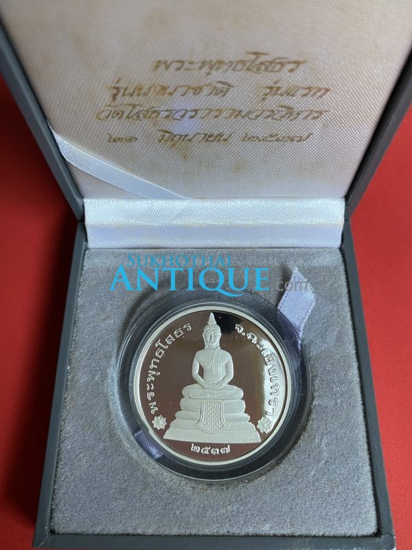เหรียญหลวงพ่อโสธรสองหน้าเนื้อเงินขัดเงา 999.90%รุ่น1 ผลิตวันที่ 21 มิถุนายน 2537 ขนาด 32 มม. ผลิตจากโรงกษาปณ์”เพิร์ช”