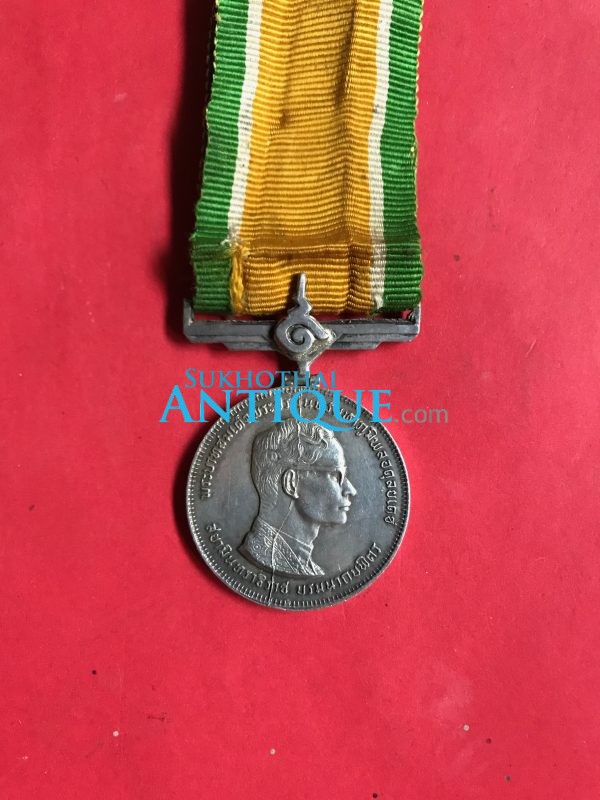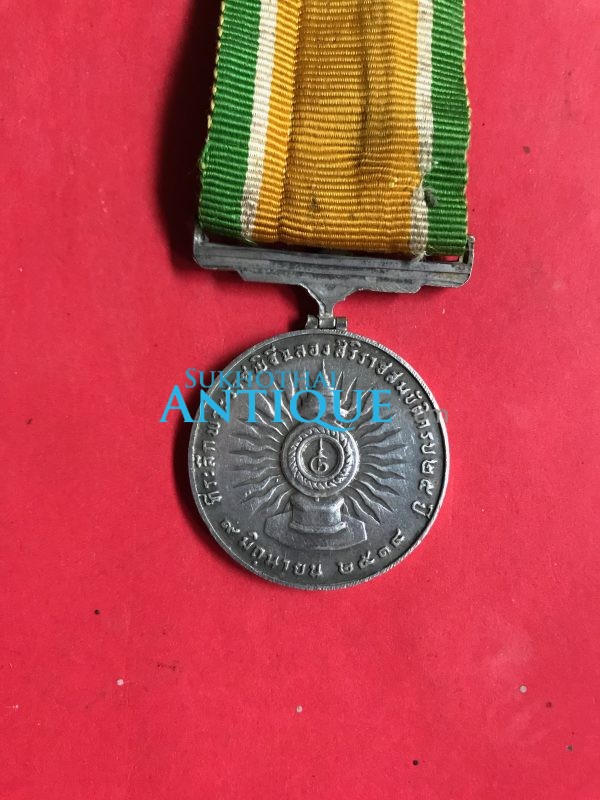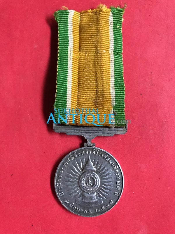 เหรียญเงินที่ระลึกพระราชพิธีฉลองสิริราชสมบัติครบ 25 ปีแนวตั้งพร้อมแพรแถบเหร๊ยญสวยงามคมชัดมากๆ ผลิต 9 มิถุนายน 2534