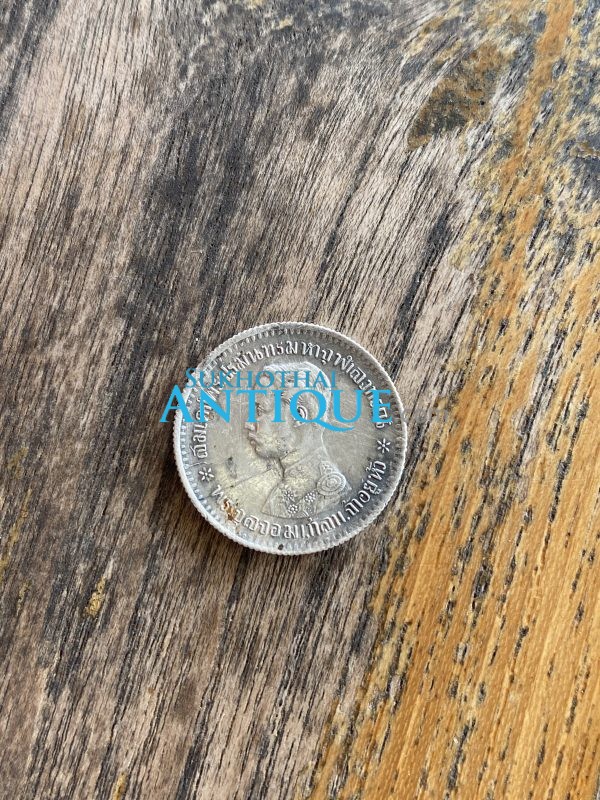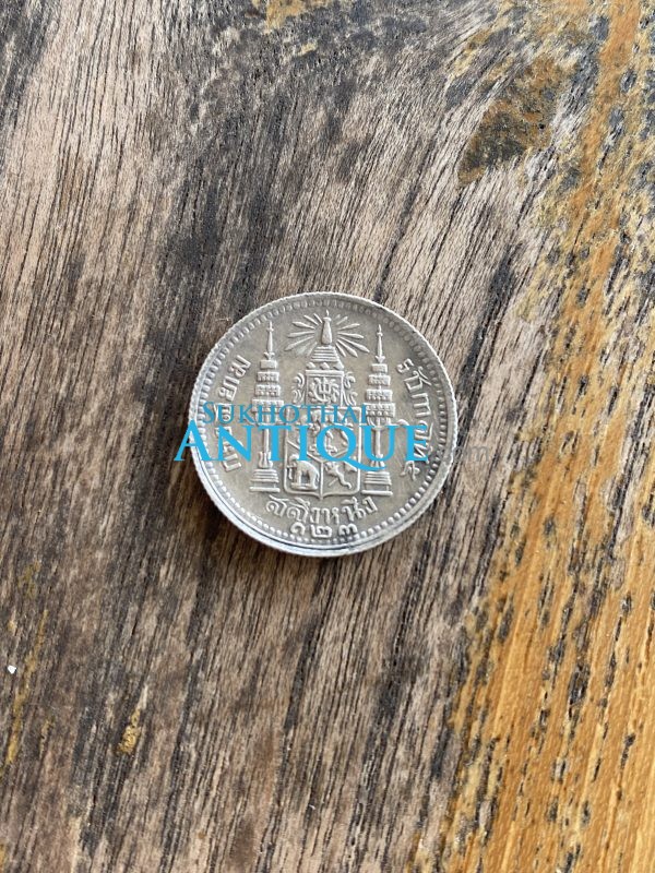 เหรียญเนี้อเงิน พระบรมรูป-หลังตราแผ่นดิน สลึงหนี่ง สมัยรัชกาลที่ 5 ร.ศ. 123 คมชัดมาก