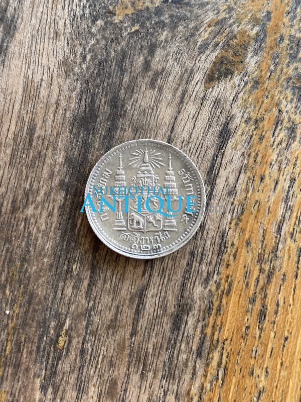 เหรียญเนื้อเงินหนึ่งบาท รัชกาลที่ 5ไม่มี ร.ศ.มีลงจารณ์เก่าผิวดำเดิมไม่เคยผ่านการล้าง เหรียญที่ 1
