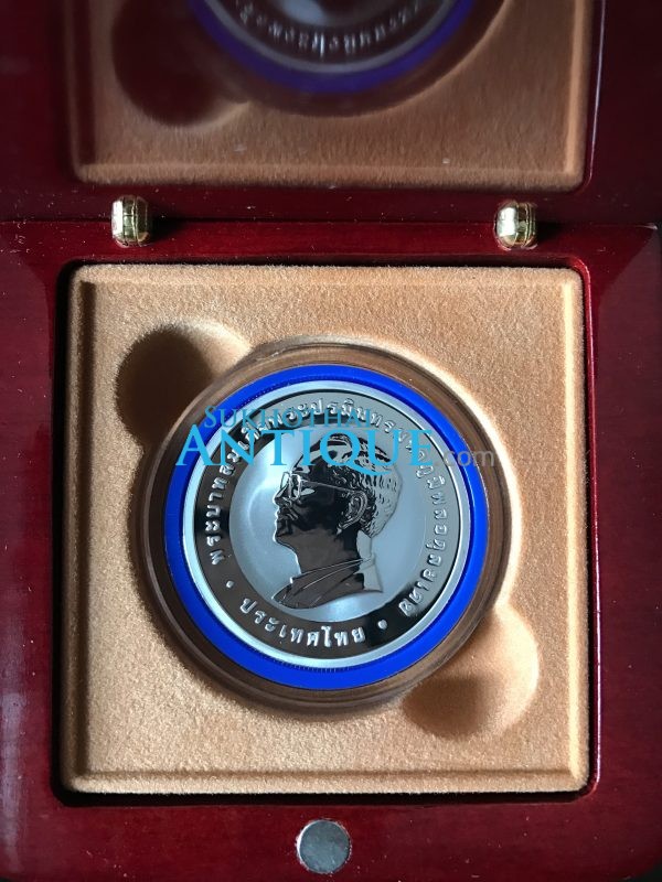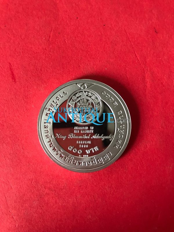 เหรียญเนื้อเงินในหลวง ร. 9 WIPO รางวัลผู้นำโลกด้านทรัพย์สินทางปัญญา เป็นเหรียญเงิน99% ขัดเงาสวยมากผลิตน้อยเพียง15,000เหรียญ กล่องและใบ