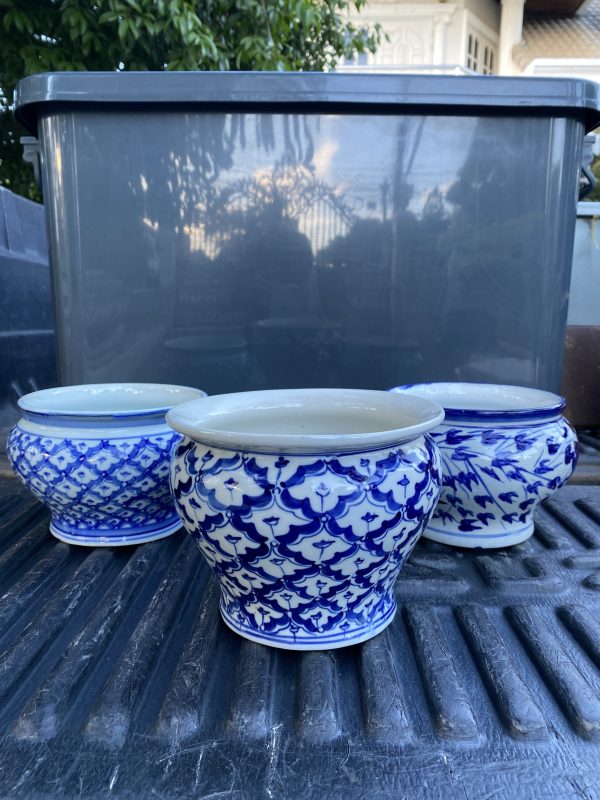 กระโถนกระเบื้องเก่าใบเล็กมี 3 ลาย