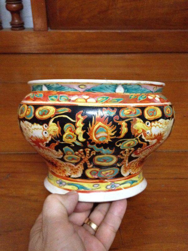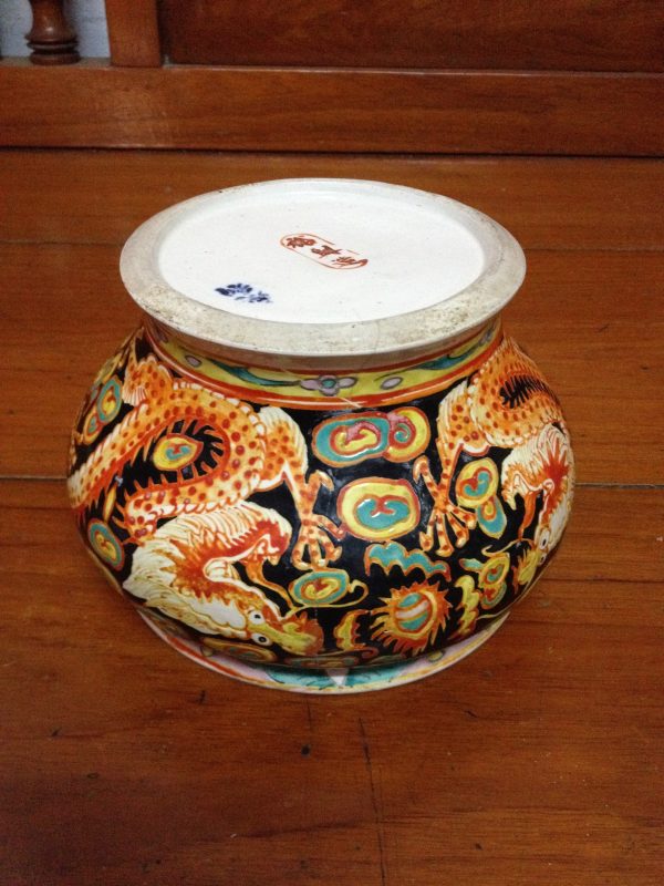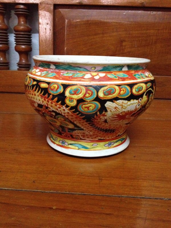 กระโถนกังใสไข่ปอกสมัยรัตนโกสินทร์ตอนต้นเก่ามาก ลายมังกรสองตัวเล่นไฟ