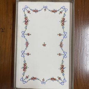 ถาดกระเบื้องเก่ารูปไข่สมัยร.5 ผลิตจากต่างประเทศลายดอกกุหลาบสีแดงขาวบานใหญ่ 2 ดอก,ตูม 12 ดอก ขนาด 18"ร้าว1เส้นบางมาก