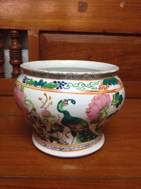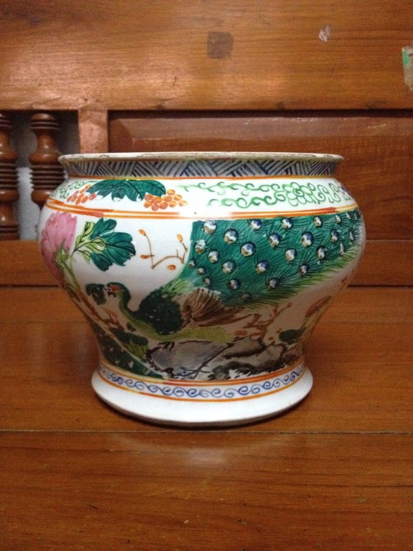 กระโถนจีนกังใสไข่ปอกเนื้อแกร่งลายนกยุง ช่อดอกกุหลาบ สภาพสมบูรณ์สวยงามมากๆ มีตราภาษาจีนอยู่ที่ก้นสองจุดสูง 6.5 นิ้ว