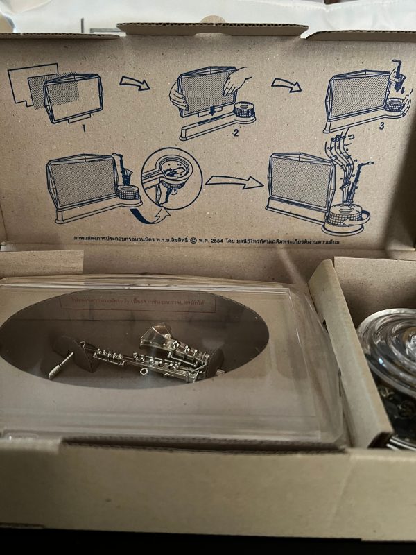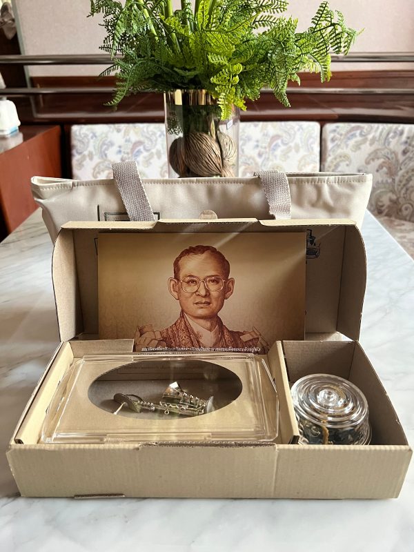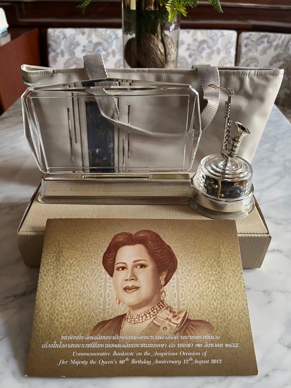 กล่องบรรเลงดนตรีเพลงพระราชนิพนธ์แบบไขรานของมูลนิธิโทรทัศน์เฉลิมพระเกียรติผ่านดาวเทียม พร้อมธนบัตร 7 รอบในหลวงสมบูรณ์