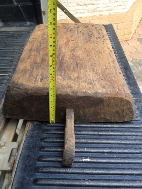 กั๋วข้าวเหนียวไม้สักเก่ารูปสี่เหลียมพืนผ้าใหญ่ (ถาดไม้ไว้คนข้าวเหนียว) ขนาดกว้าง 17 นิ้ว X ยาว 29.5 นิ้ว หนา 3.5 นิ้ว มีด้ามไว้จับ