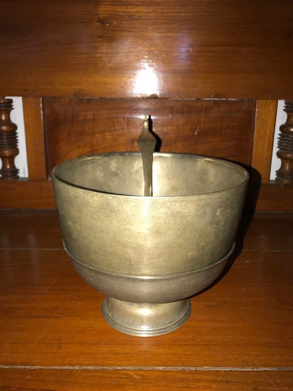 ตลับทองเหลืองจีนโบราณ มีแกะสลักลวดลายรูปและภาษาจีน โดยรอบสวยงามสมบูรณ์
