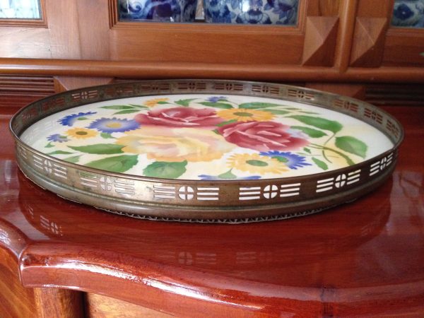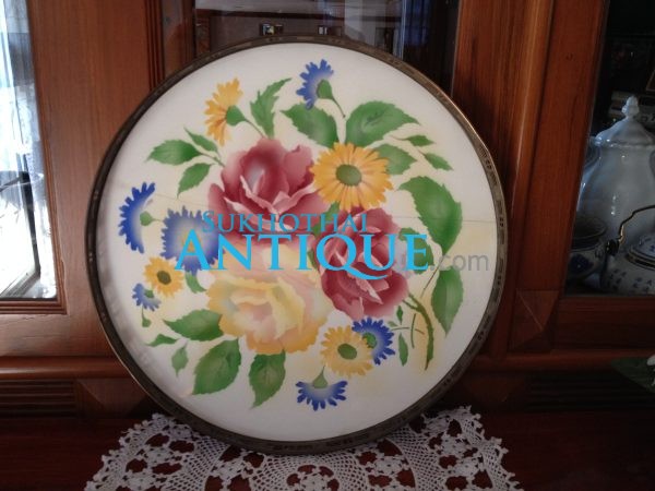 จานกระเบื้อง 16″ รูปดอกไม้ มีรอยร้าวหนึ่งเส้น