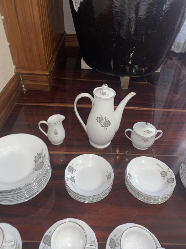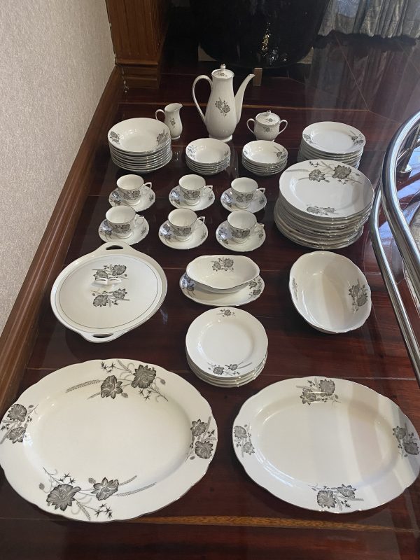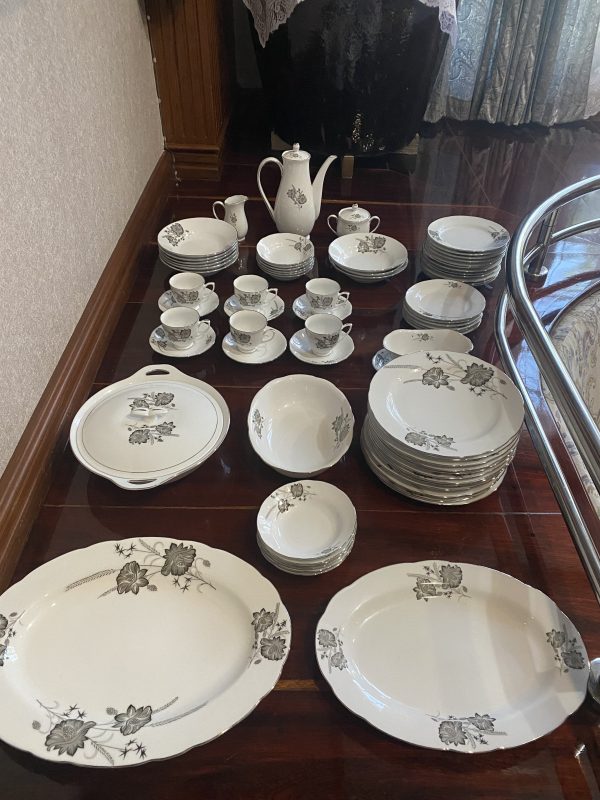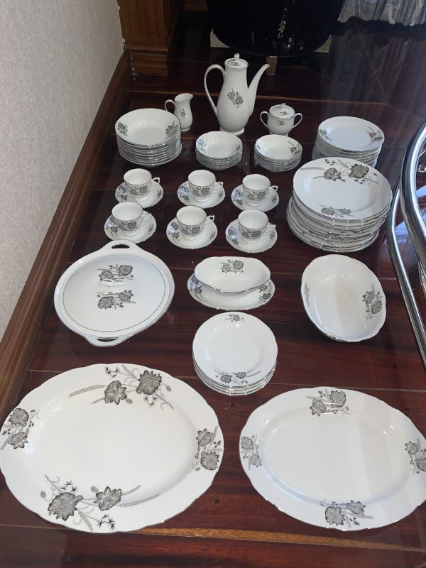 จานเก่าก้นลึกเนื้อกระเบื้องเกรด A นำเข้าจากต่างประเทศ ลายดอกไม้ขลิบเงิน มีใบใหญ่ 9 ใบ กลาง 6 ใบ และเล็ก 6 ใบสวยงามหายาก