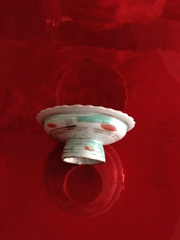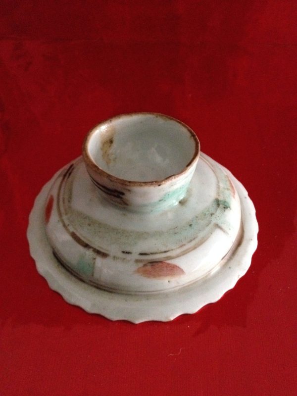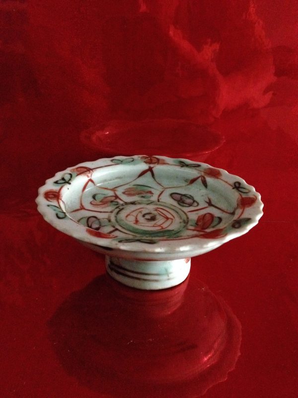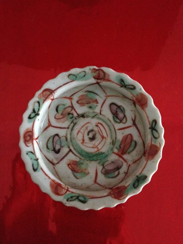 จานเชิงรัตนโกสินทร์ตอนต้น มีลายบนลายล่าง ใบเล็ก สภาพสมบูรณ์มาก ใบที่ 9
