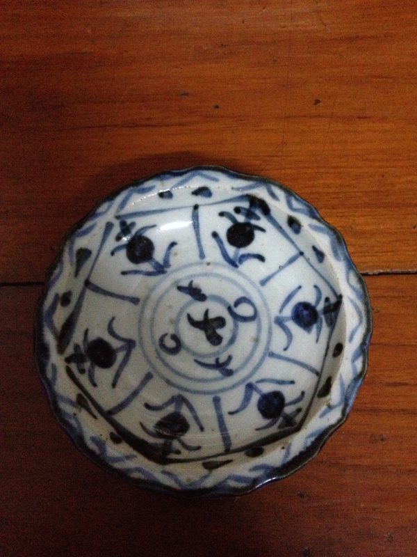 ชามสังคโลกสุโขทัย ลายรื้วตรงกลาง ที่ปีก มีเขียนลายโดยรอบสวยงาม สมบูรณ์สวยงาม