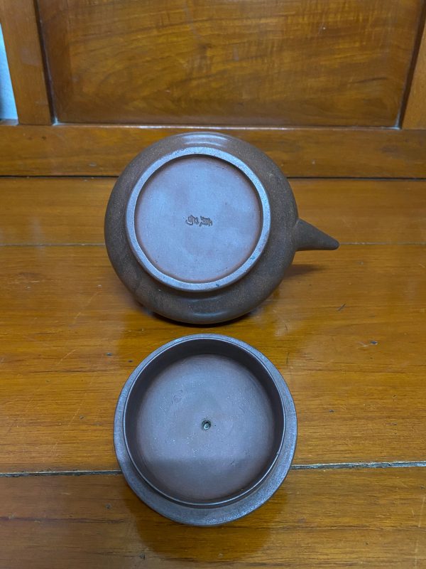 ชาป้านโบราณสวยงามสมบูรณ์มาก ออกรูปทรงไปทางจานบินสีนำ้ตาลออกเข้ม ใต้ฐานมีอักษรภาษาจีนสองตัว