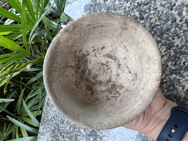 ชามสังคโลกเก่าโบราณ ใบใหญ่ ชนิดดินเผาเคลือบนำ้ยาออกเขียวไข่กา สภาพสวยสมบูรณ์
