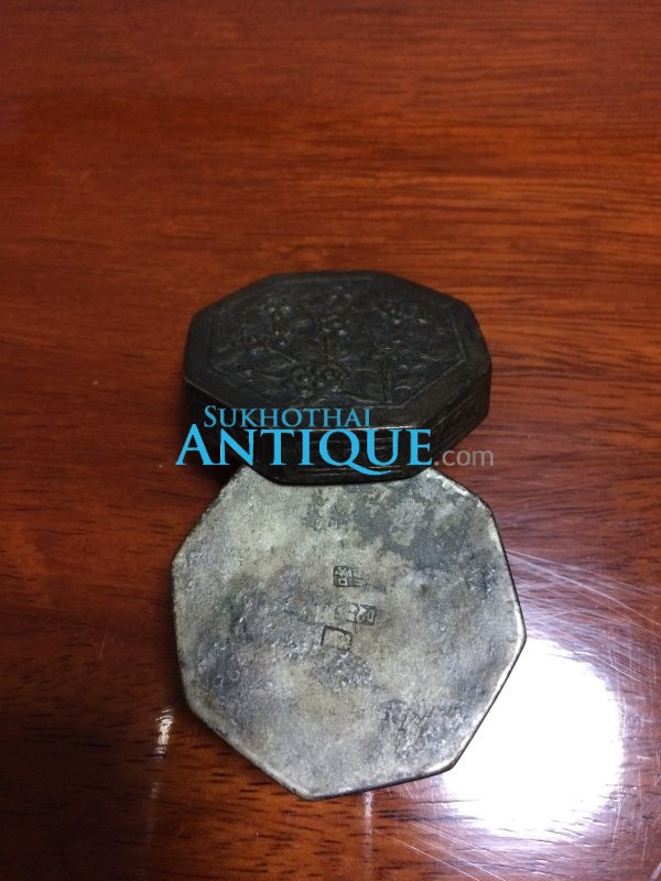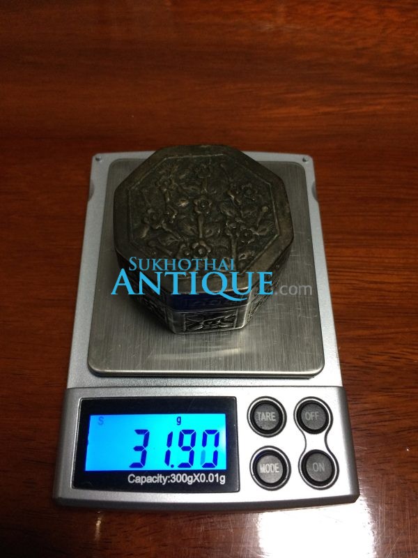 ตลับเนื้อเงินโบราณแปดเหลี่ยมหนา เก่ามากๆ ตอกลวดลายสวยงามสมบูรณ์ คลาสสิก น้ำหนัก31.90 กรัม ( 2.1บาท )