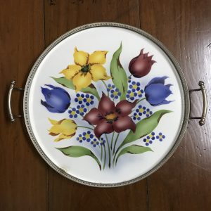 ถาดกระเบื้องโบราณ สผ. 16" ลายดอกเต็ม ประกอบด้วยสีแดง 4 นํ้าเงิน 3 และเหลือง 2