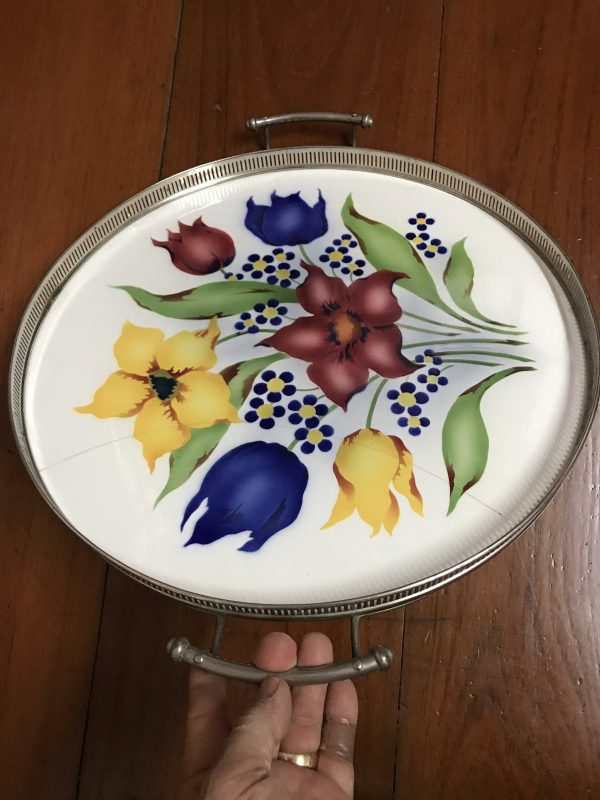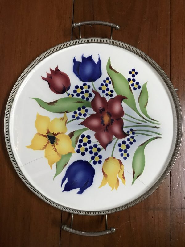 ถาดกระเบื้องโบราณกลมขนาด สผ.16″ มีร้าวอยู่ 1 เส้นนอกนั้นสมบูรณ์มาก