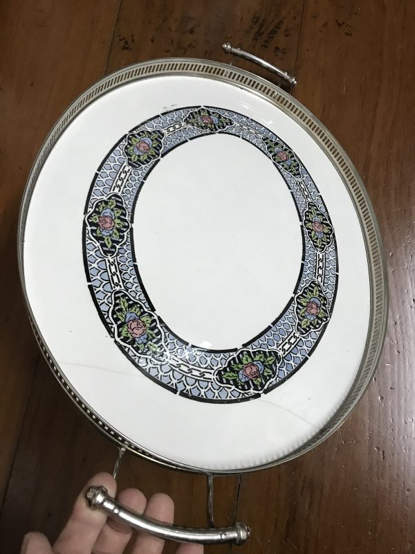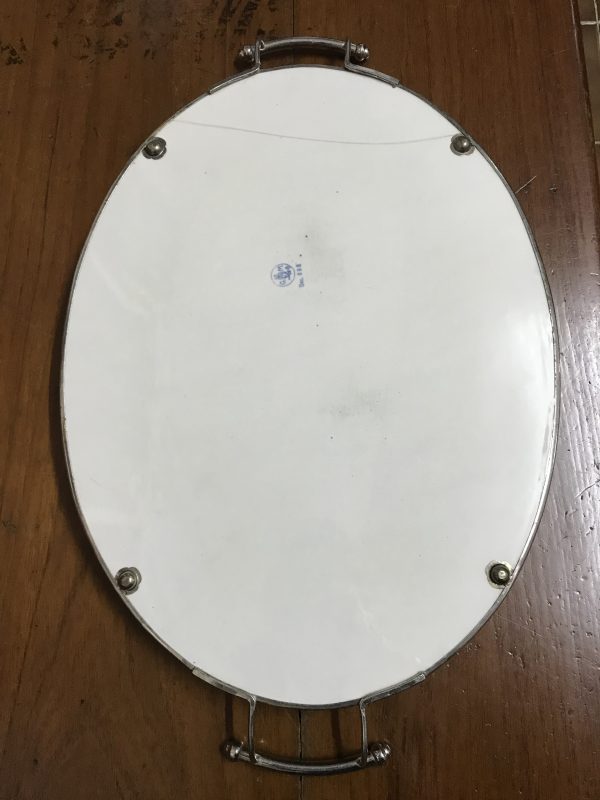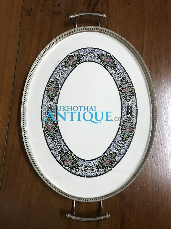 ถาดกระเบื้องโบราณรูปไข่ใบใหญ่สุด ขนาด 13″1/2 X 21″ ลายศิลปะ ตะวันตกโบราณ