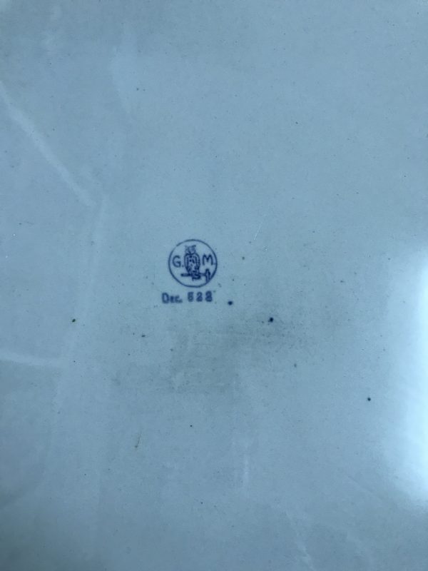 ถาดกระเบื้องโบราณกลมสมัย ร.5 ขนาด สผ.14" ดอกสไตล์ “วิคตอเรีย” มีร้าวอยู่ครึ่งเส้น นอกนั้นสมบูรณ์มาก