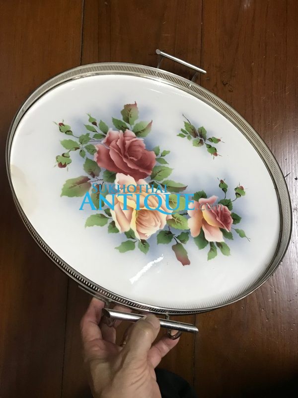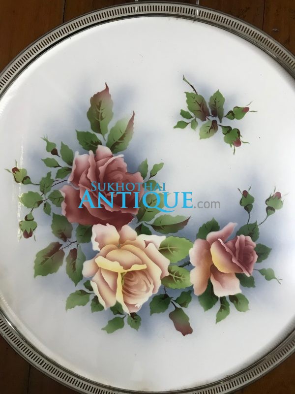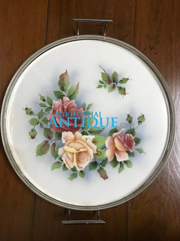 ถาดกระเบื้องโบราณ ขนาด 18 นิ้ว ลายดอกกุหลาบบานแดง 1 เหลือง 1 นอกนั้นดอกอื่นๆ เหลือง 7 ดอก