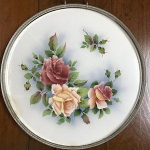 ถาดกระเบื้องโบราณ ขนาด 18 นิ้ว ลายดอกกุหลาบบานแดง 1 เหลือง 1 นอกนั้นดอกอื่นๆ เหลือง 7 ดอก