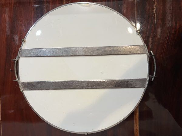 ถาดกระเบื้องโบราณกลมสมัย ร.5 ขนาด สผ.14" ดอกสไตล์ “วิคตอเรีย” มีร้าวอยู่ครึ่งเส้น นอกนั้นสมบูรณ์มาก