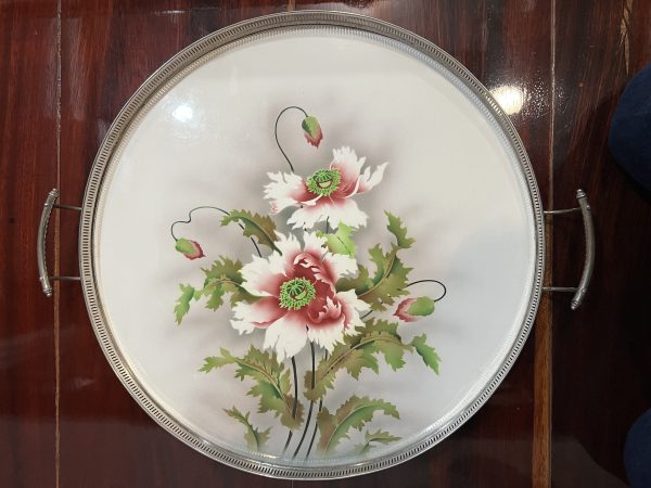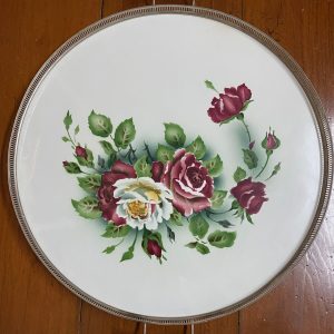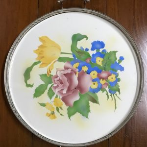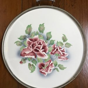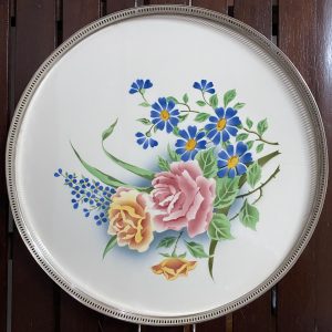 ถาดกระเบื้องโบราณ ขนาด 18 นิ้ว ลายดอกกุหลาบบานแดง 1 เหลือง 1 นอกนั้นดอกอื่นๆ เหลือง 7 ดอก