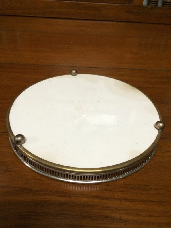 ถาดกระเบื้องโบราณกลมสมัย ร.5 ขนาด สผ.14" ดอกสไตล์ “วิคตอเรีย” มีร้าวอยู่ครึ่งเส้น นอกนั้นสมบูรณ์มาก