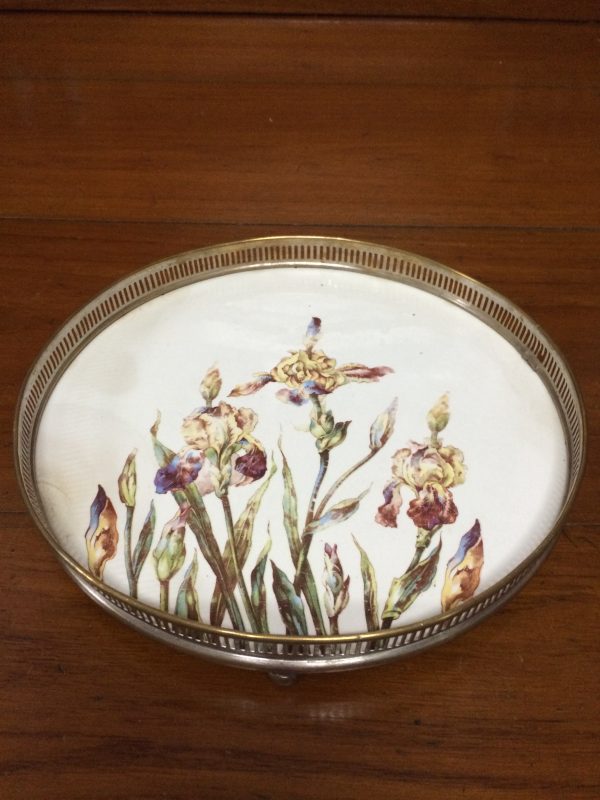 ถาดกระเบื้องโบราณ” วิคตอเลีย “ขนาด 10 “ลายดอกไม้