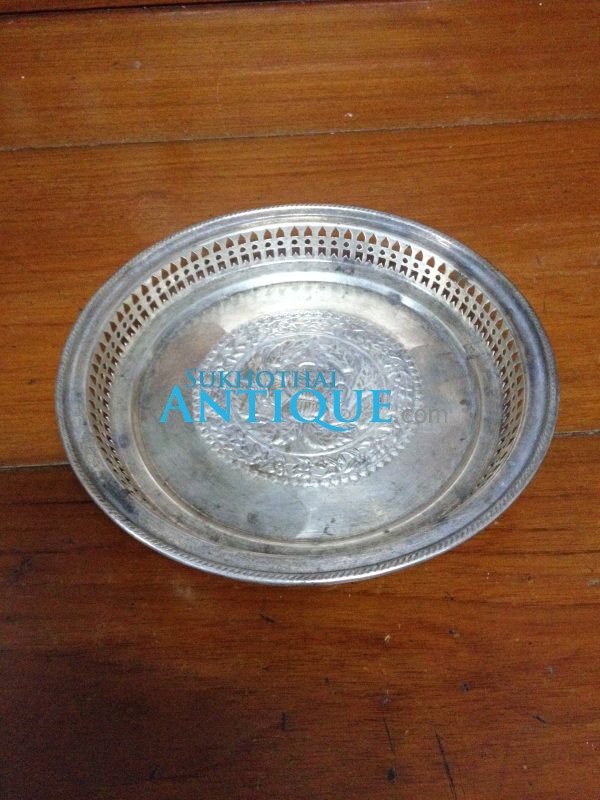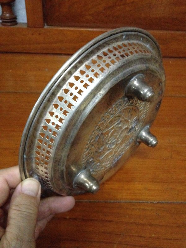 ถาดสัมฤทธิ์เก่าขนาด เส้นผ่าศูนย์กลาง 8 “มีรูปช้างอยู่กลางถาด