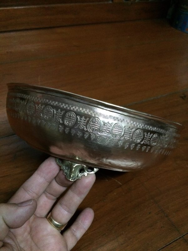พานทองเหลืองเก่า ลายกลีบมะเฟือง ขนาดเส้นผ่าศูนย์กลาง 24 ซม. สูง 14 ซม.