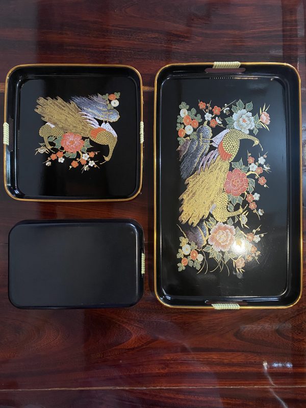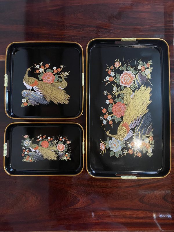 ถาดใส่ของเพ้นท์ลายสวยงามใหญ่กลาง และเล็กรวม 3 ใบ ใบใหญ่ๆมาก