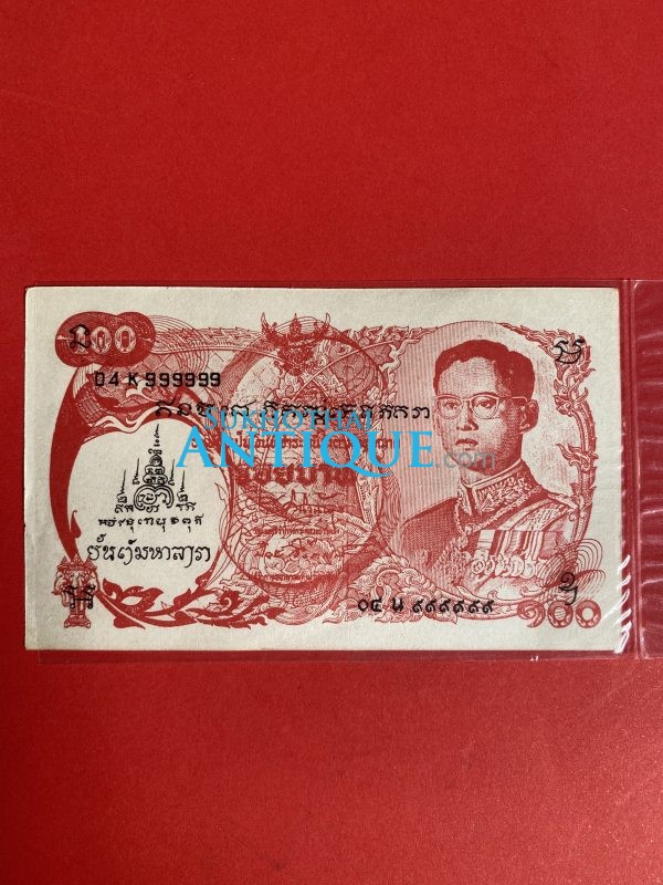 ธนบัตรขวัญถุงราคา 100 บาท พระพักต์ในหลวง หมวด 04 K 04 น 999999 พร้อมยันต์มหาลาภเสริมดวง แก้ชง โชคลาภ และยันต์ขุมทรัพย์