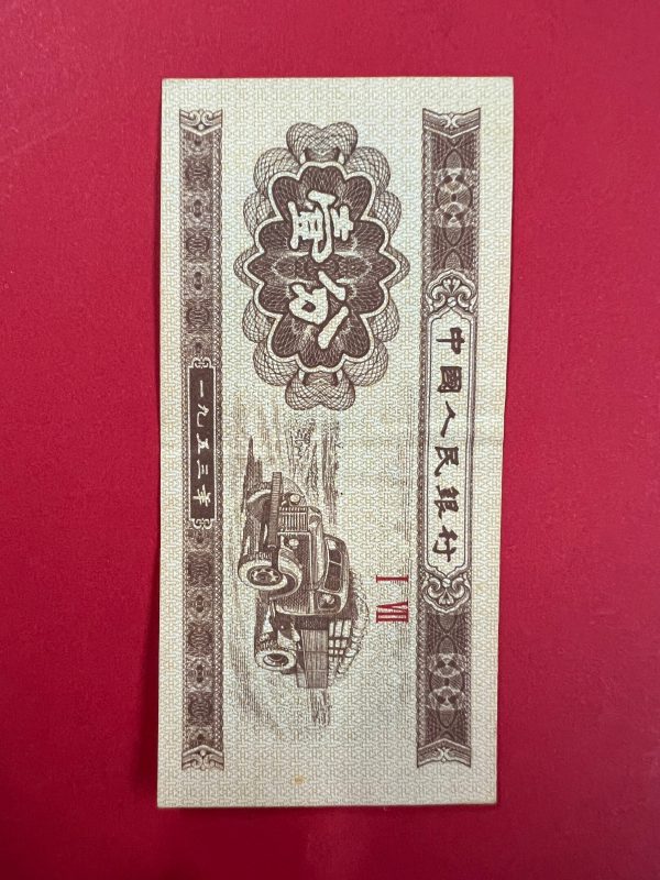 ธนบัตรเก่าประเทศจีน ค.ศ. 1960 มูลค่า 1 YUAN อายุประมาณ 60 กว่าปี นับเป็นธนบัตรรุ่นที่ 2 ที่สามารถใช้ได้ทุกเขตทั่วประเทศหลังสงครามกลางเมือง หายากมาก